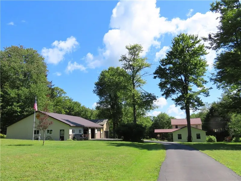 JUST ENOUGH AND MORE! This home offers a private, quiet setting with a beautiful large yard. This 3 bedroom home is located at the end of the road and surrounded by woods. The spacious modern Family room with Cathedral ceiling combined with the original built home gives this home the perfect touch for a country home. The living room and dining room flow to the eat in kitchen. The convenience of the 1st floor bedroom and a newly renovated double glass shower bath. A charming eat in kitchen with appliances, and pantry style enclosed porch. Laundry room is on the 1st floor. Two bedrooms on the 2nd floor. An added feature is the 42 x 60 pole garage with workshop and a 16 x 20 garage. Enjoy summer evenings on the covered deck or sit around the fire pit. Much to enjoy with this well maintained country home and setting!