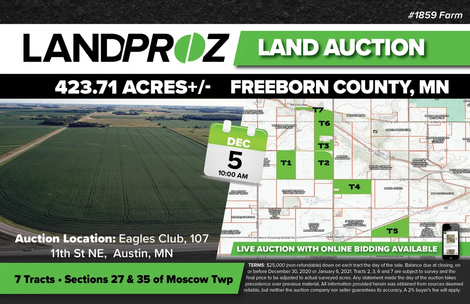 Austin and Albert Lea. MN. There are approximately 347 acres of tillable land. Farms