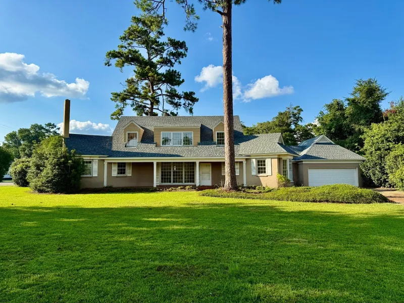 This majestic home sits on a corner lot, with the layout of an old world manor while offering modern comforts and conveniences. A grand staircase welcomes you into the home, setting the tone for the sophisticated charm that awaits. The layout features rounded walls that add a touch of architectural interest and character, creating a sense of grandeur throughout. Step into the formal dining room, adorned with intricate molding and French doors that open into a cozy den, complete with two Old English-style dens featuring inviting brick fireplaces. The layout of this home seamlessly blends historical charm with a cozy and spacious ambiance, creating a truly unique living experience that is rare to find in any age of home construction. Boasting a 2-year-old architectural shingle roof, plastered walls, and four central heating and cooling units, this property is as practical as it is elegant. Hardwood flooring, which extends beneath the carpet, adds warmth and character to the living spaces. The kitchen features granite tile countertops, enhancing both style and functionality. Beautiful custom molding and high ceilings add a touch of sophistication throughout the home. Outdoor living is a delight with a large fenced backyard, ideal for relaxation and entertaining. A two-car garage, ample storage space, and walk-in closets throughout the home offer convenience and practicality. With four bedrooms and five bathrooms, this magical home is a true gem, offering a perfect blend of historical charm and modern luxury.