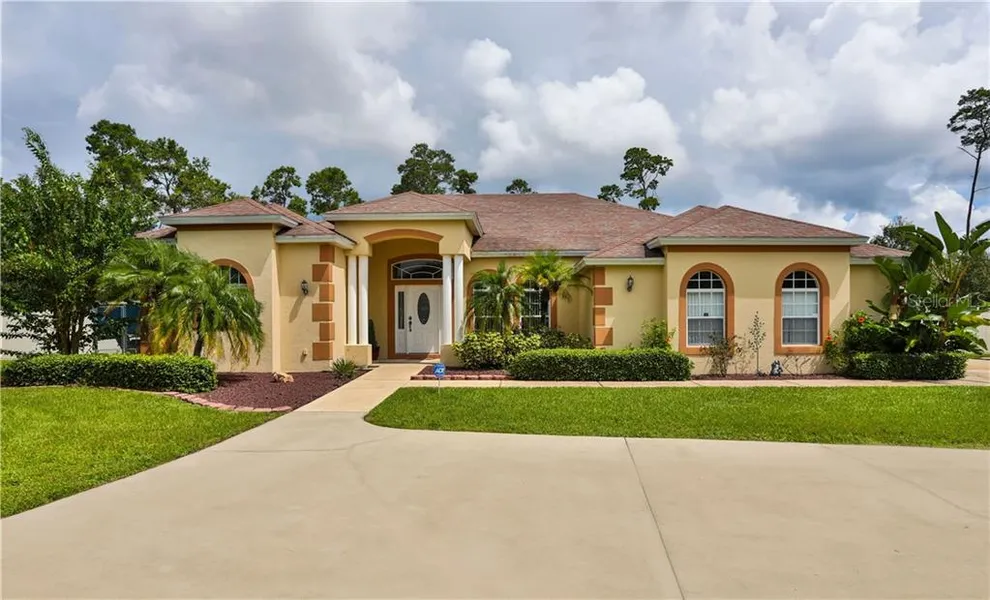 Welcome to your private oasis in Enterprise. This beautiful home has 3 bedrooms, 3 bathrooms, over 2,500 sf of living space and sits on 2.7 acres of property surrounded by trees. As you drive up the private road, you will enter through your very own gate. Once inside the gate, you will be amazed to see the property completely fenced in, a beautifully landscaped yard, an extra large parking pad and driveway for your boat, R/V, work trucks, or all your vehicles. As you walk through the front door, you will notice a bright open floor plan revealing a family room, dining room, kitchen, breakfast nook and a formal living room, making this the perfect home for entertaining family and friends. The home consists of high ceilings, crown molding, ceramic tile and wood tile throughout. In the spacious kitchen, you will find granite counter tops, stainless steel appliances, and lots of cabinetry for storage. The master suite is one of the largest you will find, with extra space built off to the side, perfect for an office or a home gym. The master bath consists of double sinks, granite counter tops, Jacuzzi tub, a separate shower and an extra large walk in closet with double entry doors creating easy access from the master suite or master bath. French doors in the living room and master suite provide access to the covered lanai overlooking your private and completely fenced in back yard, a space where you can relax before you begin your day or after a long day of work. The A/C was recently replaced in 2018. Schedule a showing today for an opportunity to call this private oasis, Home.