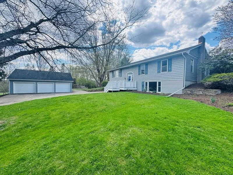Spring into your new home! This 3-bedroom, 2-bath split-level sits on 1.78 acres and features a heated 3-car garage. Inside, enjoy a spacious living room flooded with natural light, hardwood floors throughout the main level, and a kitchen with Corian countertops, oak cabinets, a breakfast bar, and built-in pantry. Both the dining room and kitchen open to a composite deck—perfect for summer evenings. The lower level offers a cozy family room, full bath, laundry area, and a game room complete with a bar for entertaining. With an expansive yard, a welcoming neighborhood, and a location that feels peaceful yet close to town, this home truly has it all!