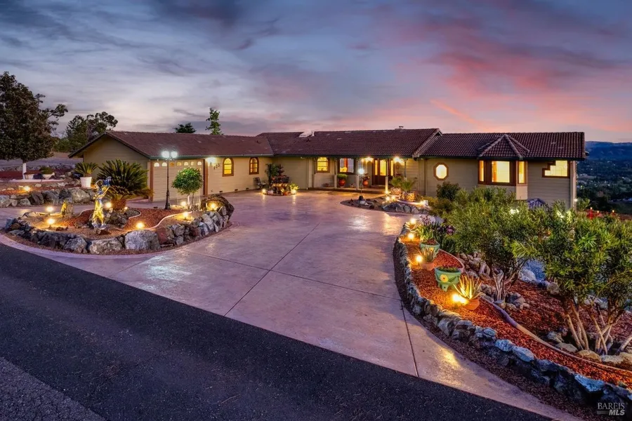Shared Lake Access Option at Park approximately 1/2 mile near. Serenity Point Lakeview Home, North Lakeport close to town yet quiet & private, on 6 gently sloping acres. Panoramic views of lake & mountains offer a breathtaking spectacle. Wildlife abounds! Large 4,132 sf, custom home, 3BD, a Nursery, & an Office, 3BA, + 2 Partial Baths. Primary Suite approx. 25' x 16' flows into lavatory, double sinks with granite counters, wraparound glass shower plus walk-in closet. East wing has a second large & one smaller bedroom with gorgeous Jack & Jill bathroom with shower. Stunning views of Clear Lake, Mt. Konocti, Lakeport & Scotts Valley. Dining room hosts sculpted ceiling and is 13' x 14' with French doors to covered deck. Kitchen with Breakfast Nook is open to Family Room with cozy gas fireplace. Laundry has granite counter & Deep Stainless sink with storage galore. Central vacuum & Alarm System on Both levels. Three individual heat & air conditioning regions. Downstairs Gaming & Party Room of approx. 838 sf, features 360-degree Panoramic Mural by professional local artist, 16' full wet bar & slider to lower deck patio & hot tub. Detached 3-Car Garage, 1-Car Attached Garage, plus 20 x 40 RV sized Outbuilding. Five minutes to Sutter Hosp.