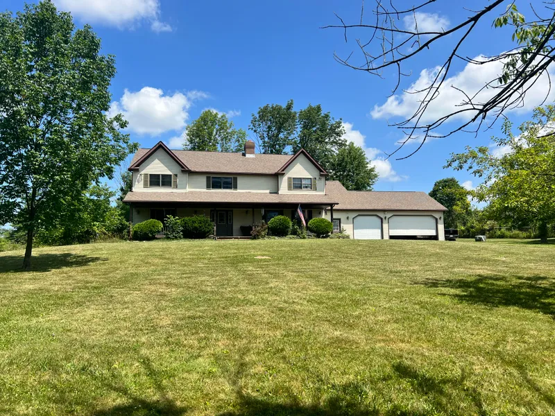 Location, Location, Location with this beautiful property featuring 20.75 +/- acres, a 5bd/3ba home with a three-car attached garage, and an outbuilding. The large 3,512 sqft home is tucked into the property at the end of a long drive. As you walk into the home, you will find beautiful hardwood features, an open kitchen, a family room, a formal dining room, an office, first-floor laundry, and much more! The second floor has five bedrooms, including a large master bedroom with high ceilings, a master bathroom, and a walk-in closet. Tons of additional space in the finished basement with a kitchen, office, full bathroom, laundry room, walkout, and separate entrance from the garage. The 40'x54' wood pole building has great storage and several stalls that lead out to 2.75 +/- acres of fenced pasture perfect for your own animals. The property has established trails that make getting around a breeze, rolling terrain, and a seasonal creek. A great mix of thick and open wooded areas creates an ideal habitat for wildlife. This property is one of a kind and one not to miss!