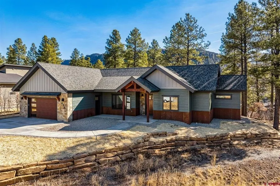 Andrew DeLeon, The Wells Group of Durango, LLC, C: 970-769-9304, , Welcome to another high-end, quality new build, 4-bedroom, 3.5-bath, finished in January 2026, perfectly positioned on a rim lot and set back approximately 70 feet, and backing green space for added privacy. As you approach the property, you will be greeted by a vaulted T&G front porch with 8 ft solid alder front door. Step inside to a spacious open floor plan that is perfect for entertaining. INTERIOR FEATURES & UPGRADES: • 10’ plate line with vaulted ceilings & exposed wood beams in all vaults • 8’ solid-core alder interior doors • Schlage hardware throughout • Insulated interior walls where needed • Engineered hardwood flooring throughout • 36" gas fireplace with tile surround & custom wood mantel • Quartz countertops & oversized fireclay sink • Soft-close solid-wood kitchen cabinetry with under-cabinet lighting • Stainless-steel KitchenAid commercial line appliance package, including 36" range & custom vent hood • Pot filler and oversized island with bar seating • Kohler faucets in kitchen and laundry with lifetime warranty • Large walk-in pantry with custom Closets Plus shelving • Kohler toilets throughout • Delta faucets in bathrooms • Ceiling fans in all bedrooms and the living room • Primary Suite: • Direct access to back deck • Oversized custom closet • Bidet ready outlet • Spa-style bath with dual vanities, curbless wet room w/glass door, two oversized rain shower heads, and Kohler soaking tub inside a 6'×9' tiled shower Guest Spaces: • One private ensuite bedroom • Two additional bedrooms with pass-through bath & separate vanities, plus Kohler deep soaking tub • Built-in mudroom • Laundry room with extra cabinetry, fireclay sink, quartz counters & desk area. EXTERIOR FEATURES & UPGRADES: •Rim-lot location backing to open space with mountain views • set back approximately 70 feet for added privacy and additional parking • Vaulted T&G front and back porch • 8' alder front door • Oversized black Andersen windows • 8’ Therma-Tru fiberglass exterior doors • Native landscaping with stacked sandstone retaining wall • Direct neighborhood trail access • Gas stub for grill and electrical run for hot tub on back deck • Oversized 625 sq ft insulated 2-car garage with insulated Clopay door, EV charger, extra storage & two exterior man doors • Tankless on-demand water heater with recirculating pump • Central heating & A/C and whole-house HRV air purification system. The location is ideal, just 7 miles from downtown Durango, 12 miles from Lemon Reservoir, and 15 miles from Vallecito Reservoir—placing you in the heart of Southwest Colorado adventures. Nearby, you’ll enjoy private Florida River access, community trails, neighborhood amenities, and the convenience of the Meadows Market. Be the first to call this simple yet luxurious home your own. The site plans, building footprints, floor plans, elevations, and renderings shown within the MLS are for illustration purposes only and subject to revision by the seller. Please do not visit without an agent present.