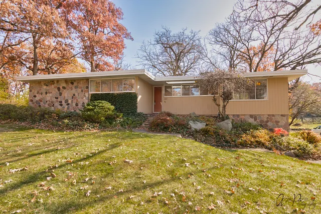 Enter into this Frank Lloyd Wright Inspired home and enjoy every detail of this Architect Designed Home Nestled on a Serene one acre plus lot with your very own Stocked Fishing Pond! The Foyer with Slate Flooring Welcomes you into this Hillside Ranch with Windows and Gorgeous Views from almost every room! The Kitchen was remodeled in 2013 including granite countertops, ceramic flooring, and includes all the appliances. It opens to the lovely table space area making it perfect for entertaining. Enjoy Hardwood flooring throughout your main living space. The Living room can function as a Dining room or a possible 3rd bedroom. The Family room features lovely stone fireplace and large windows. The Master bedroom has a huge walk-in closet which connects to the bathroom. Frank Lloyd Wright Inspired Stain Glass tastefully hangs in front of every window, a generous detail for you to keep. Walkout Basement has potential to double the living space! It features a Rec room with fireplace, Laundry room area with washer, dryer, washtub and second refrigerator and a separate storage room. The storage room can be an additional 3rd/4th bedroom if needed. Sit outside on your deck and take in the peacefulness of this private lot on a quiet street. Conveniently located just off Route 12 in desirable Barrington School District makes this home a prime location. Timberlakes Association includes Lake Rights. A/C and Furnace are new in 2013