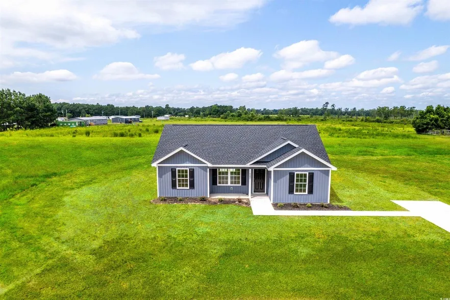New Construction located in the Aynor school district with no HOA. This 3 BR/2 BA home sits on 1.28 acres and features cathedral ceilings in the living room, granite countertops in the kitchen and luxury vinyl plank flooring throughout the living room, dining and kitchen area. This open concept floor plan is perfect for entertaining. The primary suite features neutral carpeting, a large master closet and master bathroom. Estimated completion December/January 2025. Located on the outskirts of Aynor, SC, this property is conveniently close to Myrtle Beach. Call today and ask how you can make this your future home.