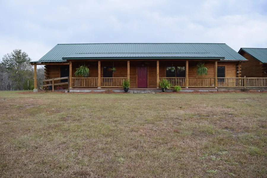 See this beautiful log cabin with acres to roam today! This 3 bedroom, 2 bath log home with with a separate suite is 100% ADA accessible. This home features a 6x8 Stockade log profile on a concrete slab and also includes the high wind package as well as aluminum clad windows. All log treatments have been completed on the log home. The open floor plan features a spacious kitchen, dining and living area with a private master suite. The master bath features a garden tub and a walk-in shower. There are approximately 15 - 20 acres fenced and cross-fenced for livestock. There is also a personal orchard which features blueberries, figs, grapes, plums, etc. This home is in close proximity to 1-8 grade schools.There are entrances from the paved Bethlehem Church Rd. as well as Iris Rd. which is dirt. This property is a blank slate as to how it could be utilized to fit your needs. Make an appointment to see today and make this ranch your own.