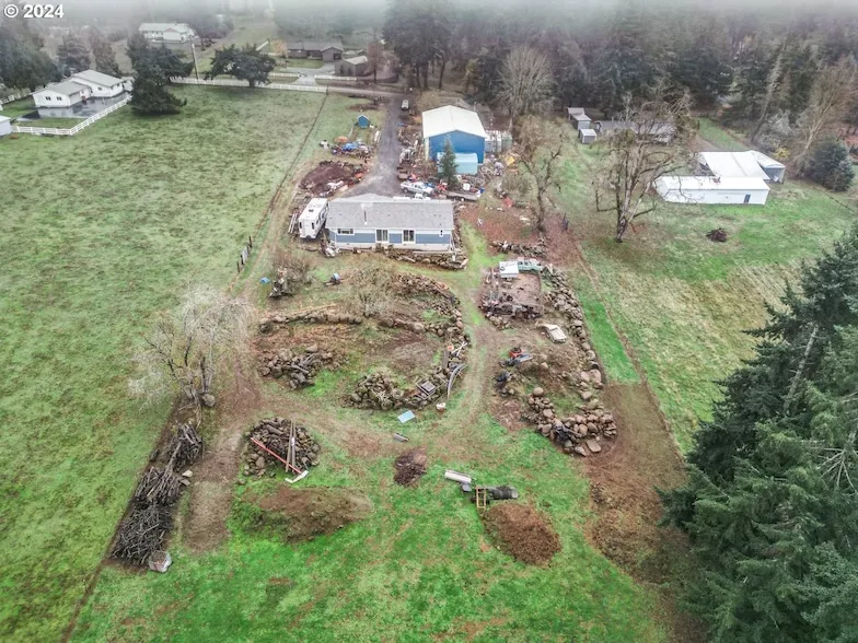 Welcome to your dream property, featuring over 2,500 square feet of thoughtfully designed living space and a stunning 40x80 shop, all situated on 2.14 acres. This tri-wide home has vaulted and 10-foot ceilings, a grand primary suite with a luxurious private bath, dual vanity, low-rise step-in shower, walk-in closet, and private backyard access for future deck plans. The split floor plan provides privacy with a secondary bedroom, a versatile office or third bedroom, a full guest bath, and a roomy laundry area. The certified wood-burning stove in the family room keeps the entire home cozy, while the living room s large windows overlook the driveway and shop entry. The gourmet kitchen features hickory cabinets, stainless steel appliances, a pantry, and a bright electric island framed by a picturesque window. The standout feature of the property is the 40x80 shop with 18-foot eaves, two overhead doors, a pedestrian entrance, a thick concrete slab reinforced with rebar, mezzanines for storage, and a framed office space, with electricity installed and water access nearby. Additional amenities include RV hookups with electric, water, and sewage, a two-car carport for vehicles or equipment, and endless potential for landscaping, gardening, or exploring tiered yard designs. The property is adorned with vibrant crepe myrtles, pinnacle hydrangeas, lilacs lining the driveway, and a variety of fruit and nut trees, including cherry, pear, apple, plum, persimmon, hazelnut, and an array of raspberry and blueberry bushes. Whether you re drawn to the spacious and versatile shop, the expansive home, or the opportunity to create your outdoor paradise, this unique property offers it all with the peace of rural living and the convenience of city amenities.