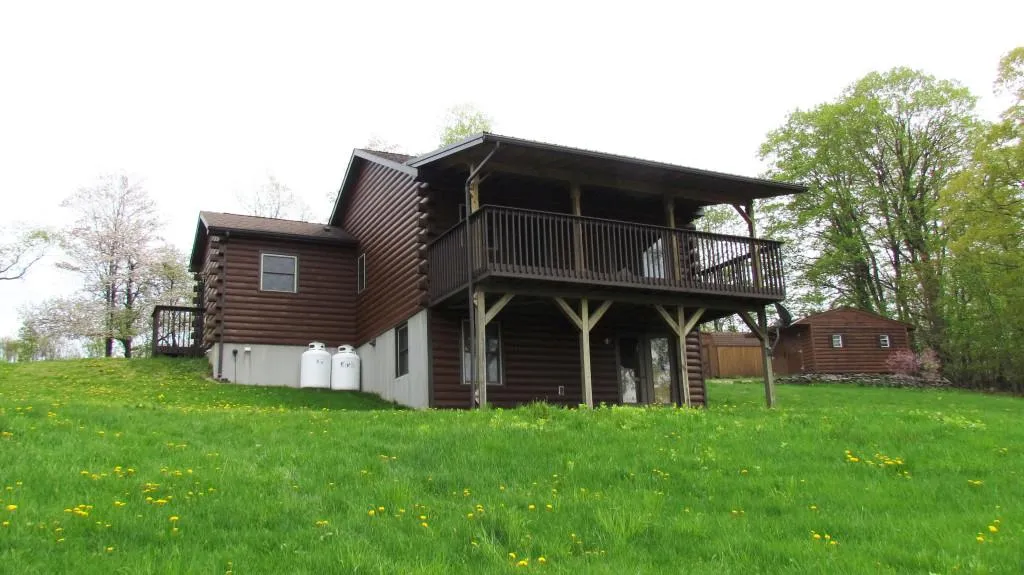Lovely private custom built/designed home with log siding including authentic log corners in Solon NY (McGraw), Cortland County.