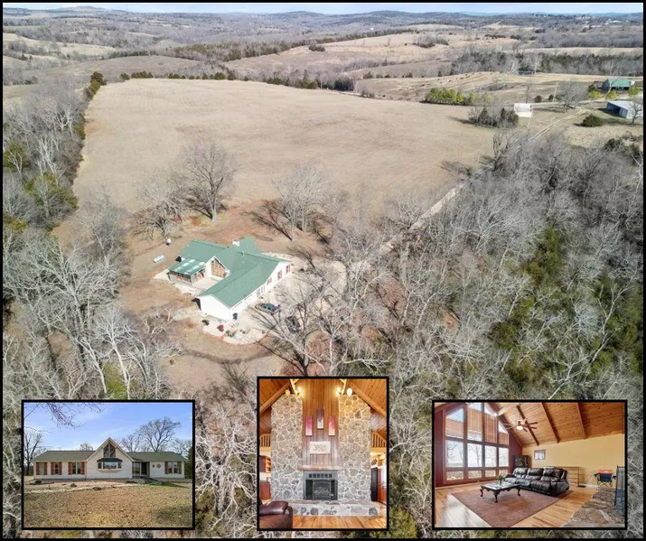 Discover the endless possibilities of this remarkable 48.47-acre (m/l) hobby farm just outside Theodosia, MO. Nestled in the picturesque Ozarks, this surveyed property harmoniously blends tranquility w/opportunity, making it an ideal retreat for both relaxation & productivity. As you drive down the winding lane towards your custom-built home, you'll be captivated by the charm & unique character that awaits. This ranch-style residence features a breathtaking floor-to-ceiling fireplace in the family room, creating a warm & inviting atmosphere. With a thoughtful split bedroom floor plan, the main suite offers a luxurious ensuite complete w/ a soaking tub, spacious walk-in shower, & an expansive walk-in closet w/built-in storage. The additional two bedrooms are generous, bathed in natural light, providing comfortable spaces for family or guests. Don't miss the versatile loft, perfect for an office, playroom, or your creative hobby space. Historically, this property ran as a manufacturing plant for delicious strawberry jam, leveraging the bountiful strawberries grown right on site. The original building, still semi-equipped with commercial appliances, presents an exciting canvas for transformationwhether as a guesthouse for family visits or as an avenue for supplemental income. The ample storage shed/workshop is a handyman's dream, fully equipped with shelving, heating, electricity, & durable concrete flooringideal for any projects you might envision. Situated near the renowned Bull Shoals Lake, you'll have access to some of the best fishing, boating, swimming, skiing, and kayaking experiences in clear, clean waters. About 15-20 minutes from the Peel Ferry and Buck Creek Marina. Seize this rare opportunity to own a versatile property that blends rustic charm with modern conveniences.