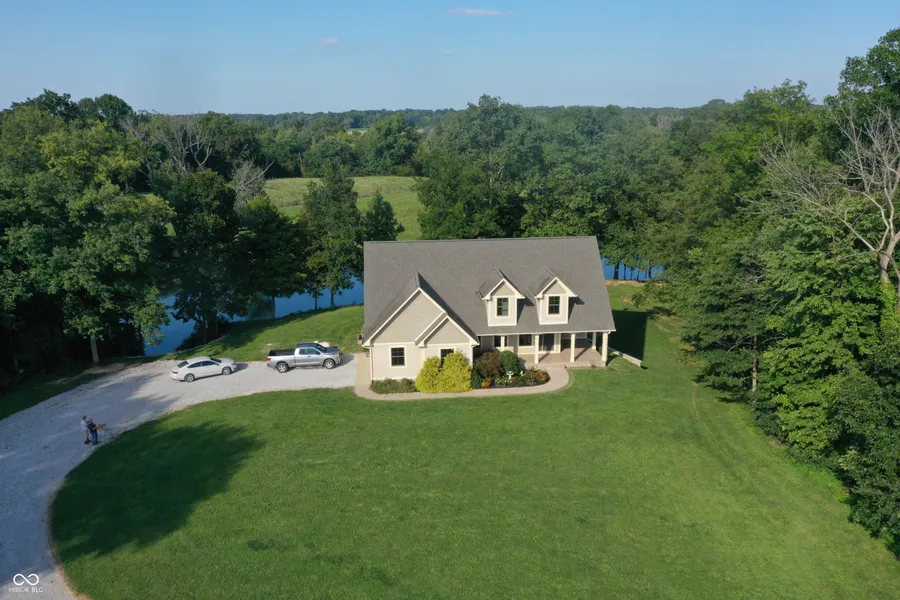 28 acres of nature & wildlife surround this custom built home. The main floor features a large updated living room with a gas fireplace, vaulted ceiling & custom light-filled windows showcasing a stunning view of a large private pond. The beautiful open kitchen & dining area feature a sliding door to patio, bamboo flooring, granite countertops & stainless steel appliances. The newly carpeted master bedroom features a large sliding door with a stunning view, a lit tray ceiling & French doors. The master bath has dual sinks & walk-in closets, a stone shower & whirlpool. Entertain at your own park. Walkout basement with theater room and so much more. Property has an area with unique cabin, custom bar, firepit area, electric & trails.