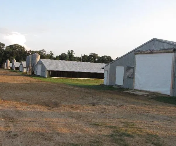 Six retrofitted broiler houses currently under Pilgrim contract sitting on 43 acres. 2002sf brick home, 2 ponds, fenced, city water and well,40x60 shop and storage buliding.
