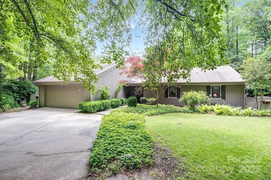Welcome to this inviting 3BD/2.5BA home where comfort and convenience come together! Located just minutes from schools, shopping, restaurants, and groceries, it offers easy year-round access and a thoughtfully designed layout. Multiple flex spaces provide options for a home office, guest room, or creative studio. Enjoy energy efficiency with passive solar design in the home, plus a cozy sitting area featuring a wood stove, eat-in kitchen w/breakfast bar, dining room and living room w/soaring ceilings. Carolina Closet systems add smart organization in every bedroom. The star of the home is the gorgeous 4-seasons room, perfect for relaxing while overlooking your beautifully landscaped, park-like backyard complete with a small creek, mature grapevine arbor and vibrant blooms. A covered concrete patio with built-in deck seating is ideal for entertaining. With a large garage, extra parking, and a well-maintained interior and exterior, this property is truly a hidden gem in a prime location.