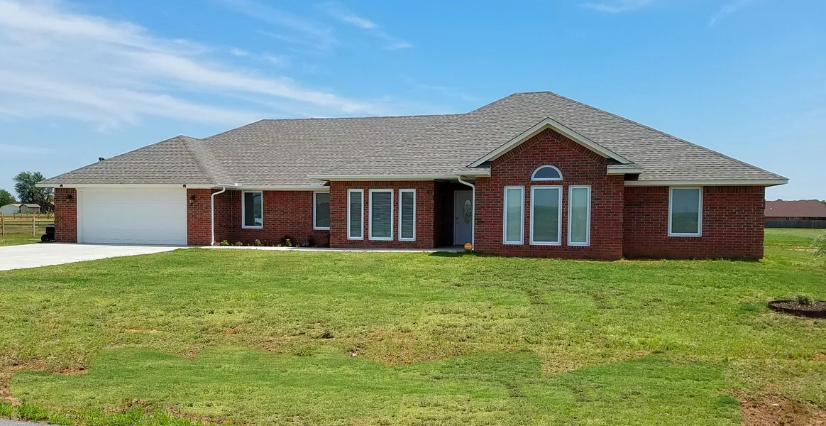 Great home in the new Veterans Acres Addition just minutes from Altus AFB! This home sits on 1.35 acres and features an open floor plan and 4 car garage! Built in 2016, this home has a large open great room has a fireplace, and large island/breakfast bar separates the kitchen from the living room. Kitchen has lots of storage space and soft-close doors and drawers, and a pantry. Master bedroom is approx. 15' x 16' and has an attached bathroom with a 3' x 4' shower stall and large soaker tub. Master closet is 12' x 6' and has built-ins. All three other bedrooms are on the opposite side of the house and each has a ceiling fan, walk-in closet and vaulted or tray ceilings. Hall bathroom has double sinks and a tub/shower combo. Inside utility room has storage and folding station. Out back there is a covered patio, privacy fence, storm shelter and 12' x 20' storage shed. Home has a 20,000 watt generator and anaerobic septic system.