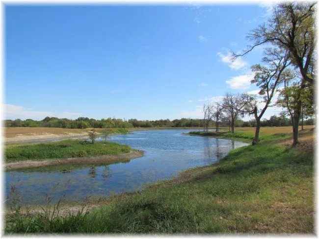 The property borders Lindsey Creek and has nice timber along the creek as well as a wooded area at the entry and trees near the eastern border, making for a very private environment. There is a dirt bike riding area at the southeast part of the property. The lake was reworked and expanded in 2004-2005 and then stocked with fish.