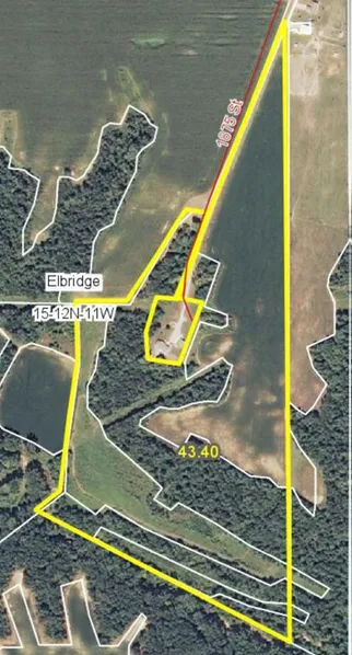 43.39 acres, m/l, with 25.4 crop acres and P.I. of 106.6. 19.3 acres timber and approx. 9 ac. in permanent pasture.