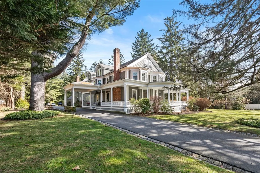 Beautifully sited on over an acre of land, this property sits close to the Wellesley Line. Welcome to an elegantly appointed home that offers a unique blend of classic charm and semi-modern amenities. Bring your vision to renovate as needed to accommodate your lifestyle. Spread across 3 floors, this property features 7 bedrooms, 4 full baths, and 2 half-baths. The oversized kitchen has white cabinetry, granite counters, an island, and a sunny dining area overlooking the yard. A butler's pantry connects to a formal dining room. The living room flows to the sunroom. A dedicated library provides a serene retreat for book enthusiasts, while the music room awaits those who appreciate the art of sound. The 2nd floor primary ensuite has a walk-in closet and a cozy sitting area. 6 fireplaces adorn the home. Whether you're hosting a gathering or enjoying a quiet evening, this home has it all. A wrap-around covered porch and a sizable level backyard with a storage shed complete the home.