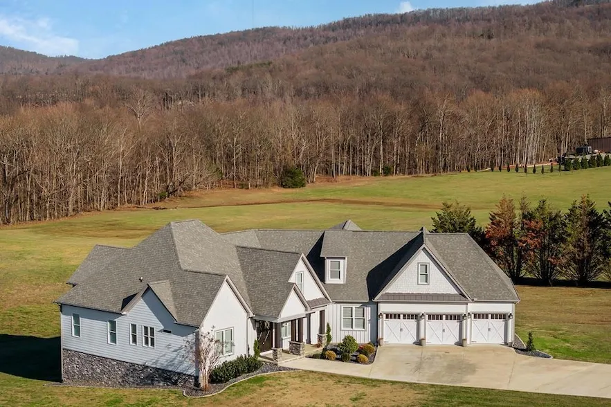 Just minutes from town, this gorgeous 4500 SF home combines luxury and custom craftsmanship at every turn. With 4 spacious bedrooms, 4.5 baths, a wide-open layout, and hand scraped hickory flooring, it's perfect for both everyday living and entertaining. The chef's kitchen features top-of-the-line appliances and a hidden pantry, while the great room with its soaring wooden ceilings flows effortlessly to a huge outdoor living space. The master suite offers a spa-like bath and a custom walk-in closet, and each bedroom is generously sized with plenty of natural light. For anyone needing extra space, the 6-car garage is a standout feature, offering tons of room for vehicles, tools, and storage. Thoughtfully designed with custom finishes throughout, including luxury bathrooms and built-in safe room, this home provides both comfort and privacy on over 5 acres. It's the perfect blend of style, space, and convenience!