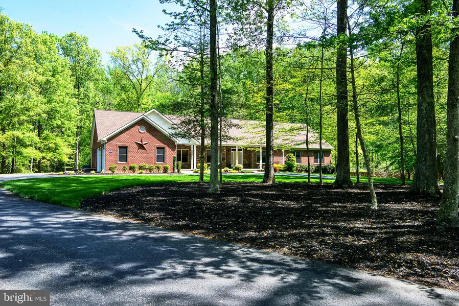 Single level living at its finest in this custom designed and built 5BR 4.5FB brick home nestled on just over 5 acres of mostly wooded privacy. This immaculate upscale rambler offers vaulted ceilings in the living areas with 9ft ceilings elsewhere on the main level and in the mostly finished walkout basement adding to the spaciousness of the total 8,400 sq ft this home has to offer. The circular driveway brings you to the front porch where a large grand foyer welcomes you into the home, off of which is the living room. Entertain or relax and admire the view in the very open floor plan of the kitchen, dining and family room areas with the nearly floor to ceiling windows allowing natural light to pour into the space. The open kitchen offers loads of cabinet space, granite counter tops, stainless steel appliances including double wall convection ovens and glass cooktop, center island breakfast bar along with a desk area, pantry, laundry room and dining area. The family room offers a large stone fireplace and mantle flanked by custom built shelving and cabinetry. Off of this area is the custom built rear deck constructed with very durable Ipe hardwood decking and rails with built in seating. The den/home office is tucked away off of the family room area. The 4 ft wide hallway takes you to the bedroom wing of the home where you will find the primary bedroom with a spiral staircase and loft tucked under the vaulted ceiling, with the primary bath offering a separate tiled shower and corner spa tub with a large window, double sink granite topped vanity and large walk-in closet and linen closet. The four other bedrooms, each with their own walk-in closet, and two full hall baths are in this area as well. Off of the kitchen area are three oversized side load garage stalls with 9ft tall doors. Down the 4 ft wide staircase to the basement level you will find a very large family room with fireplace and a walkout level sliding door to the rear yard. Additionally on this level is a full bath, game/rec room, a media room, a large home office/finished room, work shop with a 60A subpanel , a storage room and large utility room with sink. The home has two heat pumps systems with propane backup as well as both electric and propane water heaters to keep up with any hot water demands. The home has a 350A electric service supply, a 30A generator connection and even a 50A exterior electrical outlet connection near the parking area. This home could also potentially be an amazing vacation rental able to handle large groups in style. Seller can accommodate a quick settlement.
