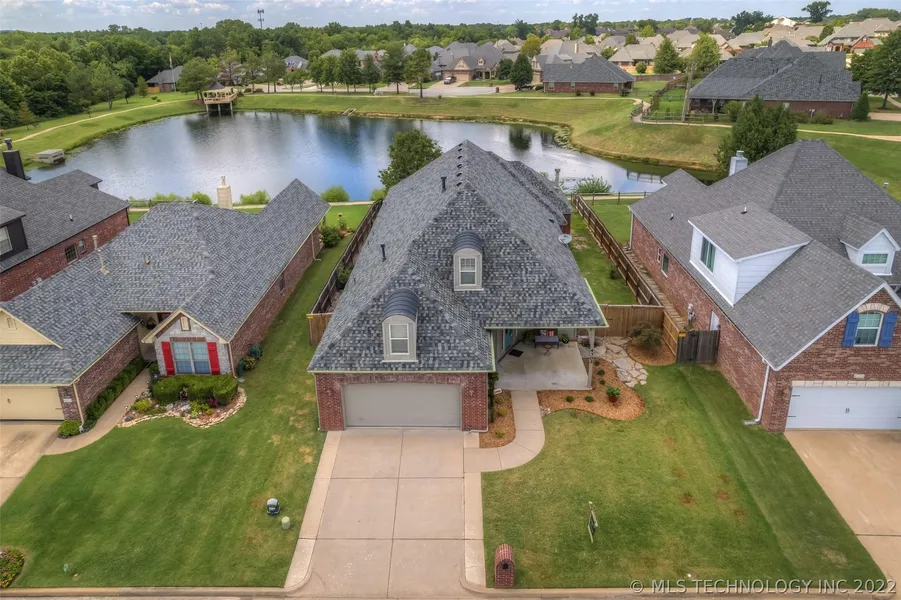 WOW! 4 Bed/3 Bath in Broken Arrow School District With Outstanding Pond View! This Beauty Has It All! Soaring 20+ Foot Ceilings; Impressive Hardwood Floors; Open Concept Granite Kitchen With Stainless Steel Appliances; Sprinkler System; Security System; Water Heater New in 2021; Upstairs AC New in Aug. 2022; Roof New in Aug. 2022; 2x6 Exterior Walls; Floored Attic; Tandem 3-Car Garage With Plenty of Workshop Space; Fully Fenced Yard Backing Up to Large Stocked Pond; Split Floor Plan With Excellent Layout; Formal Dining; Huge Gameroom and Bed/Bath Upstairs; Abundance of Storage Throughout; Great Neighborhood With Pool, Playground, Community Gazebo, Stocked Pond, and Sidewalks to Tulsa Walking Trails and Rose West Dog Park. Close to Highways, Hospital, Shopping & Entertainment. Move In Ready!