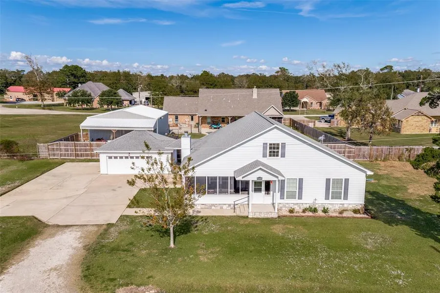 Custom built home with a gorgeous view of Trinity Bay accessed by a private drive. 48/Pier and Beam construction, Cement Board Exterior w/30 year composition shingle roof. Plywood enclosed-no foam, Cell-bar insulation, double pane windows, radiant barrier, Copper piping. 10X23 screened porch. Detached, single door garage w/porte-cache. Lots of extra concrete for parking. Interior Custom accents include 2-stained glass windows, fireplace w/gas starter, Breakfast bar w/a custom pine countertop, distressed cabinets throughout, shot gun laminate floors, Deep jacuzzi tub in the guest bath. His and Hers walk-in closets in the master bedroom. His and Her sinks in the master bath plus a vanity. Step-in shower. All of these wonderful features on 1.23 acres. Make this special place your "Home Sweet Home".