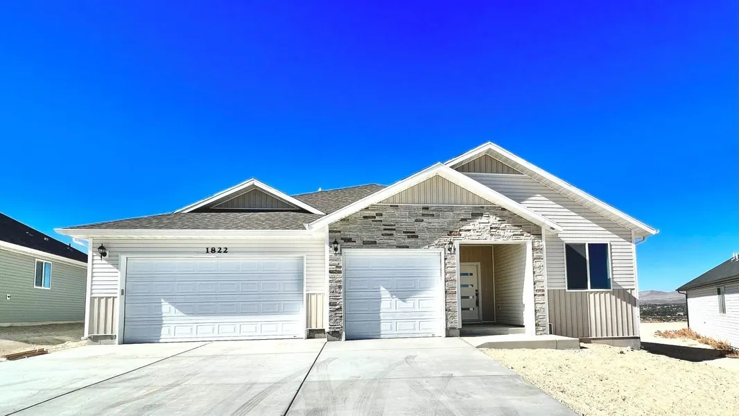 Located in Elko's newest subdivision Bergeron Village . Model: THE GENOA W, 3 CAR GARAGE. Status - Not Permitted. Buyer may choose colors. Estimated Close of Escrow date is TBD. Builder to pay up to $5,000 toward buyers closing costs. Up to $1,000 to be paid in closing costs by preferred lender. New standard features include: carpeting in bedrooms, luxury vinyl plank flooring throughout the rest of the home, vaulted or coffered ceilings (depending on the model), central air conditioning, granite countertops, a full tile backsplash in the kitchen, soft-close cabinets and drawers, stainless steel appliances including microwave, dishwasher, gas or electric range, a kitchen island. Tile backsplashes in bathrooms. The master bathroom features a dual vanity, and a tile tub surround or a tile shower floor (depending on the model). Walk-in closet with shelving and boxes. Garage door opener with keypad, and a remote. Please note that a refrigerator is no longer included as a standard feature. If home is not permitted a model change can be made with builder approval. Photos are for illustrative purposes only. Note: There is a $100 per year trail maintenance fee for trails throughout.