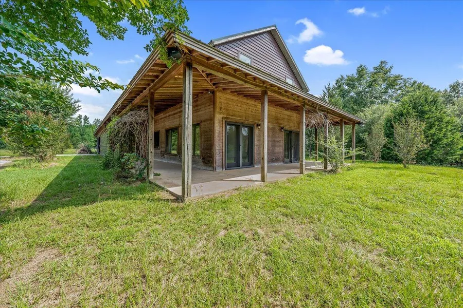 Large 4-bedroom, 3.5-bathroom home with an attached guest suite nestled in the woods just south of Henderson in Rusk County, Texas! On the main floor, this home offers a spacious master suite with exterior access to the porch, a combined kitchen and dining area with a walk-in pantry, a large office with built in shelving and wooded views from the built in granite desk, a media closet, half bathroom and a well-lit living area with views of the neighboring pond. Upstairs, there are three full size bedrooms, two full bathrooms and a large storage room with attic access. All windows offer excellent views of the surrounding woods. The guest suite is attached by a large covered carport and is outfitted with a full bathroom and kitchenette. A paved drive leads to the 1.0 acre property and crosses the neighboring pond, with a circle drive in front of the house offering easy access to the front door or the carport. This home is available with owner financing.