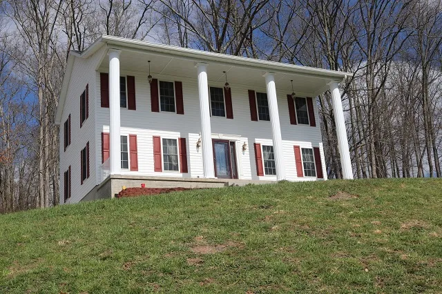 Custom built! Sitting atop a knoll, with 2.13 acres, is a custom built 4 part modular set on 8 inch thick rebar, reinforced concrete stamped to look like brick, great floor plan, Brazilian cherry wood floors throughout, full basement with 1/2 bath. Custom cherry cabinets dovetailed. tankless on demand water system, porcelain master bath floor, extra wide windowsills, this has it all. Ritz Craft Homestead model, no detail overlooked, 6 panel oak doors. Sit on top of the world and watch the world go by.