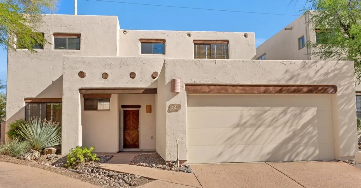 This beautifully fully renovated three-bedroom, three-and-a-half-bath home offers a private sanctuary with stunning views along the Rillito River Path throughout the home. The community provides private keyed access to the path, offering a short and scenic 400-yard journey to Trader Joe's, 1/4 mile to St. Philip's Plaza, and the weekend farmers market. Enjoy panoramic views of the mountains and desert landscape from the spacious living room with a gas fireplace, and from the primary suite upstairs with its own private balcony perfect for relaxing under the stars. The large, completely remodeled primary bathroom features expansive windows surrounded by treetop views, creating a serene spa-like atmosphere. The home showcases newly installed Italian tile flooring that is ...