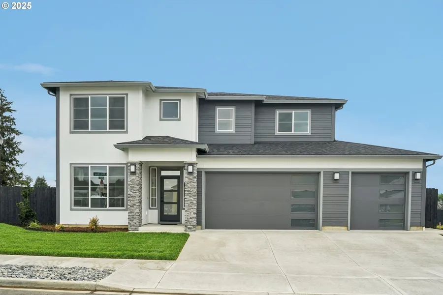 Welcome home to the Bainbridge, our most versatile primary-on-main floor plan! Walking in the front door, past the den and bathroom, you come into the grand 18 foot tall two story great room full of natural light. From there you go into the kitchen perfect for entertaining with its massive sit-in waterfall quartz island. Across the kitchen is the dining room with access to the covered patio through an incredible 12 foot wide glass sliding door. Adjacent to the kitchen, behind double doors is the owners retreat. Between the bedroom and large walk-in closet is the bathroom with a two sink vanity, soaking tub and shower. At the top of the stairs, to one side is the recreation room, a full bath with double sinks, and one of three bedrooms. Across the large open hallway are the other two rooms looking out onto the backyard. This home is full of upgrades, including quartz countertops throughout, no carpet on the main, high end appliances and upgraded flooring. This home is Energy Star NextGen certified. 2 yr builder warranty + 2-10 Home Buyer Warranty gives you peace of mind for years to come!
