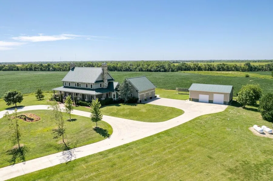 PROPERTY DESCRIPTION: 4 Bedroom 4 1/2 bath home on 39+- acres with a 1.5 acre stocked pond and approximately 36 acres of tillable farm ground currently planted to soybeans. The stocked fishing pond has mature channel catfish and a dual head aerator system that keeps the water open through the winter. Wildlife is abundant on the property with a solid harvest history of Kansas Whitetail Deer and Tom Turkeys. Quail calls are heard almost daily morning and evening! A 40 x 30 metal building with concrete floor and electric provides an excellent place for extra vehicles, equipment, tools, or the fun accessories youll accumulate to fully enjoy this premier property. Extras include 13KW Schnieder controlled solar power system PLUS auto Generac backup. Location is perfect if you desire a quiet rural setting, but require quick and easy access to the convenience of Wichita. Just 3 miles east of Greenwich Rd and minutes from the amenities of east Wichitayou rarely see an opportunity to duplicate this setup! Interior amenities are endless3 master suites, quality flooring and countertops, multiple bar areas, library, guns safes, fireplaces, 16 camera CC security systemthe list goes on! Main floor flow is excellent for entertaining! 3/4 of the house has a wrap around porch for outdoor relaxing and enjoyment, and the views are great from that viewpoint as well as from the many upstairs windows overlooking the property. Schedule a time to look today, you wont be disappointed!