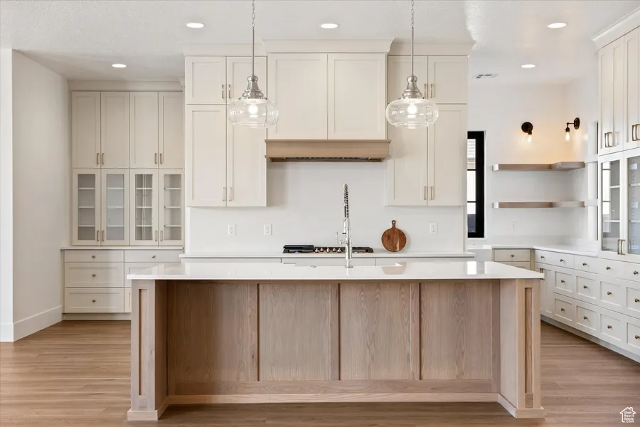Amazing, nearly new custom home with striking curb appeal and a welcoming wrap-around porch, perfect for relaxing evenings. Inside, a spacious main floor primary suite and 12' slider create an open and airy feel. Soaring ceilings and thoughtful finishes include quartz countertops, upgraded fixtures, shiplap, board and batten, floating shelves, and custom cabinetry throughout. The gourmet kitchen is a showstopper with GE Caf appliances, double ovens, a large island, and a wrap-around butler's pantry. Built with quality 2x6 framing and gas plumbed to patio. The fully insulated garage and RV parking add convenience, while the location near recreation areas and schools makes this home as practical as it is beautiful. Agent is related to seller.