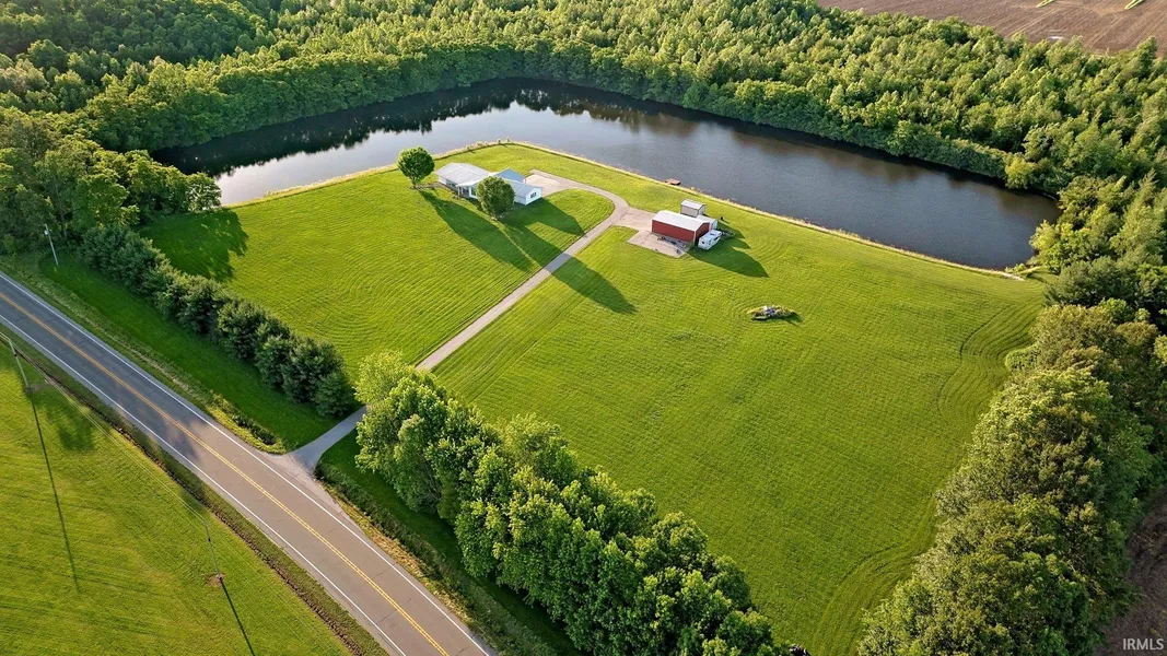 Nestled in the heart of Greene County, this exceptional 40-acre parcel offers a rare combination of natural beauty and loads of amenities. The property features a 7-acre fully stocked lake, providing a serene backdrop and ample recreational opportunities. The long, asphalted driveway welcomes you to this expansive property, where you'll find a charming ranch-style home, spacious outbuildings, and scenic vistas. The home boasts 3 bedrooms and 2.5 baths, with over 2,100 square feet of living space filled with natural light, thoughtfully designed for a seamless flow between rooms. From the foyer, you enter into the huge living room featuring a vaulted ceiling and a striking stone fireplace with a woodburning insert. The newly renovated kitchen is a chef's dream with custom cabinetry, stunning quartz countertops, and stainless-steel appliances, opening to a formal dining room. All three bedrooms are situated on the west end, each with ample closet space. The owners' suite includes double closets, a full bathroom with a shower, while the main bathroom features a new double vanity and a stand-up shower. Off the living room, you'll find a designated laundry room with a folding station and an extra room perfect for storage, crafts, or an office. The attached two-car garage provides easy access to the home and basement. Recent updates include a newer HVAC system, metal roof, LVP flooring throughout, and a sump pump with battery backup. Outdoor amenities include a covered deck with views of the lake, perfect for entertaining or relaxing. A large 24 x 40 pole barn, built in 2001, with 200-amp service suitable for welding, and two more outbuildings offer abundant storage options. The back half of the property is wooded, ideal for hunting, hiking, or exploring, while a well-placed dock on the lake is a great spot for fishing or enjoying the tranquil water. This property is a true gem, combining comfortable living with ample outdoor space for recreation.