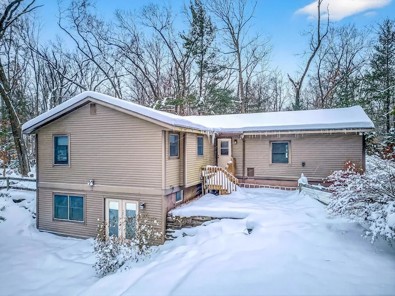 Set on a private 1.3 acre parcel near White Lake, this one owner home offers peaceful surroundings with flexible living space. Built in 2000, the home features 2 bedrooms and 2 bathrooms, with the lower level half bath already plumbed for a future shower. The main level living area and kitchen are filled with natural light, highlighted by Andersen windows, vaulted ceilings, and an open, airy feel. Main floor laundry adds everyday convenience. The full walkout basement includes a gas fireplace and provides excellent versatility, with roughly half of the space unfinished and ideal for storage, recreation, or future finished living area. A long winding driveway leads to a circular drive at the home, creating a private setting with easy access. Additional features include a 2 car attached garage, central air, natural gas, well and septic, high speed internet, and a roof and skylights that are just one year old. Immediate possession is available, offering a great opportunity to enjoy a quiet Whitehall location close to White Lake with room to personalize and grow.