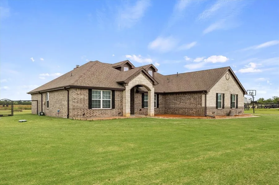 Rustic Elegance in Caddo Mills - Luxury Without Limits! Discover the art of luxurious living in this exquisite 4 bedroom, 2 bathroom property nestled in the charming setting of Caddo Mills ISD. This exceptional home is a masterpiece of design and comfort, offering the allure of NO HOA and NO CITY TAXES. From its fantastic curb appeal to its immaculate interiors, every inch of this residence exudes modern elegance blended with rustic charm. Step inside to be greeted by an open and inviting layout adorned with beautiful hardwood flooring. The heart of the home is the stunning gourmet kitchen, where floor-to-ceiling cabinets, gas appliances and an oversized island create the perfect space for culinary delights and entertaining guests. Adjacent, a cozy living space awaits, complete with a wood-burning fireplace that evokes warmth and comfort. A versatile study or formal dining area, enhanced by the character of knotty alder barn doors, provides flexibility to suit your lifestyle needs. The primary bedroom retreat is generously sized, offering a serene escape with its ensuite bath featuring a spa-like shower, dual sinks, and a spacious walk-in closet. Secondary bedrooms are thoughtfully designed to ensure guest comfort and privacy. The exterior of the property combines a stone and brick facade with full irrigation system, all contributing to its sleek curb appeal. The covered back patio serves as an ideal spot for gatherings or peaceful relaxation, while the fenced perimeter offers sweeping views of wide open spaces, perfect for those who value both privacy and the beauty of nature. This property stands as a testimony to refined rustic luxury in the serene setting of Caddo Mills!