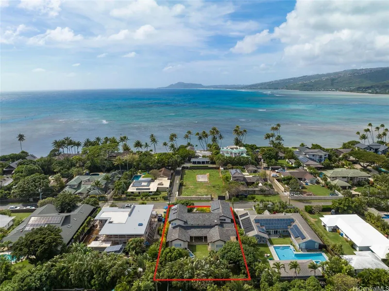 Don’t miss this immaculately maintained and tastefully upgraded 5 bdrm/4.5 bath executive style residence, including a 1 bdrm/1 bath LEGAL OHANA guest quarters, in the highly coveted Portlock neighborhood. Situated on an expansive 14,788 sq. ft. LEVEL lot, this 4,836 sq ft home features a grand living room with soaring ceilings, beautiful hardwood floors throughout, and an expansive grand primary suite on the first floor. The 1 bdrm/1 bath guest quarters has a separate entry, its own kitchen and gorgeous Diamond Head and ocean views. Other features include 44 owned PV panels with net metering agreement, a spacious open kitchen, an expansive covered lanai, and a beautifully manicured backyard with an above-ground endless swimming pool, perfect for indoor/outdoor entertaining. Immerse yourself in the best of island living as ocean access is just across the street. Conveniently located near Costco, beaches, parks and Koko Marina Shopping Center with restaurants, shopping and entertainment. Must see to appreciate!