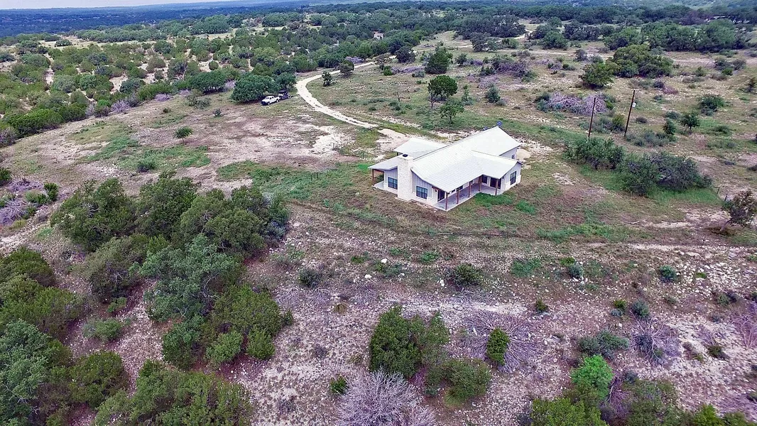 This beautiful ranch is loaded with Live Oak trees, big draws and outstanding views. Situated perfectly on a hill near the south end of the ranch sits the custom 2 bedroom 2 bath rock home. The home is spacious with an open concept and many upgrades, including, granite, custom tile showers, vaulted wood ceiling, standing seam metal roof and a large rock fireplace. From the large porches you can sit and enjoy the view for many miles in three different directions. There is also a nice attached 2 car carport with storage. Additional improvements include two cinder block buildings that the current owner uses for storage and a workshop.