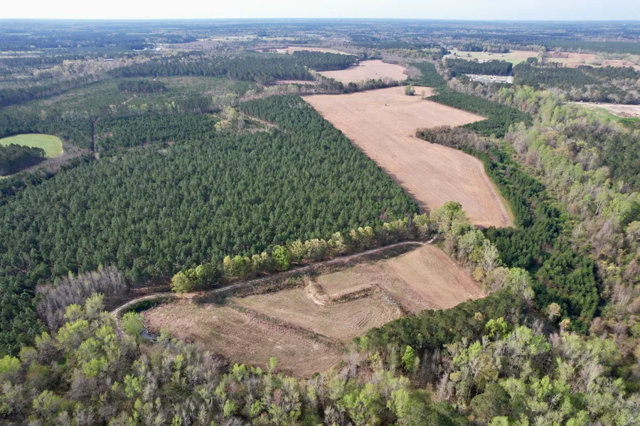 The Sharp Farm is located just outside of Lake City, South Carolina, in Florence County. The sprawling 435-acre tract has it all, and it's the perfect property for someone seeking a comfortable weekend getaway in the country. Nearly 65 acres of the property are open fields, which are planted and farmed annually. A smaller 10-acre field is planted and used for fall dove hunts. Roughly 32 acres of the farm are planted in longleaf pines, which are kept clear of brush and farmed for pine straw. For the duck hunter, there are two separate duck impoundments - each fed by a well. Eight tower stands convey with the sale of the property and are strategically located around the farm. Food plots are planted annually for deer hunting. For target practice, there is a 1,000-yard shooting range. Near the back of the property, and at the end of a sandy dirt road, is the farmhouse. It has a wide screened porch overlooking the "Green Pond" - a 3.5-acre pond that surrounds the house. Inside, there are 3 bedrooms and 2 bathrooms. With brick floors, a wood-burning fireplace, and vaulted ceilings, it's a charming place with a lot of character. Other features include a tractor shed, a dock, and even a pecan orchard. This is a special property with tons of character, and it's the best place to enjoy time in the country.