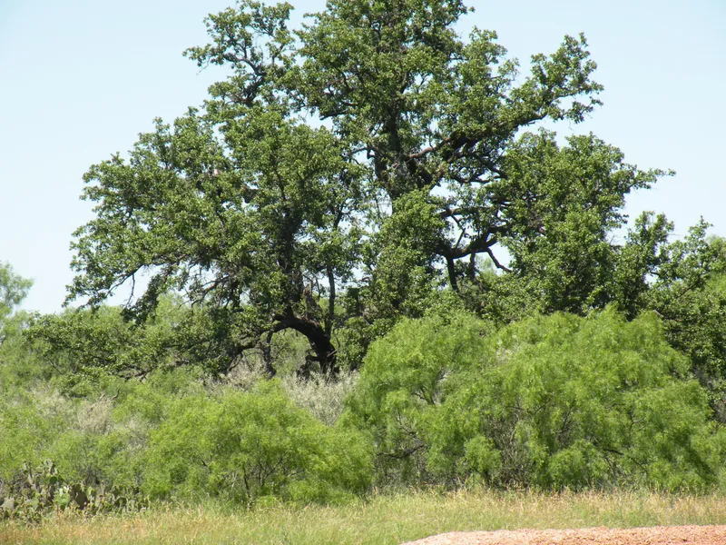 The ranch terrain is gently sloping. The appearance is varied; part of the ranch has heavy brush cover similar to South Texas. There are nice live oaks among the beebrush and mesquites. It also has cultivated fields that are typically planted to wheat. The wheat provides some income and is a great attractant for deer.