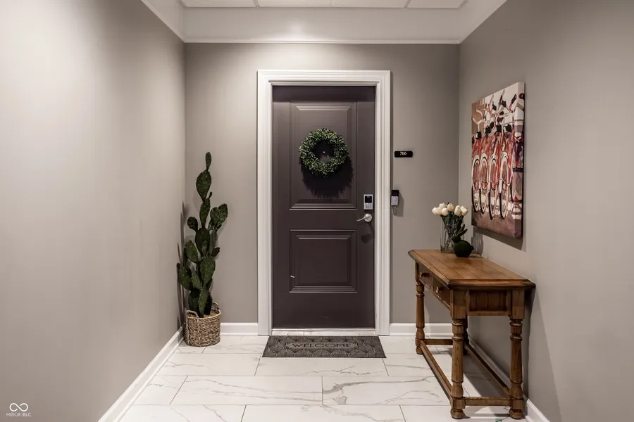 At the historic point where Calvin Fletcher's farm met the Mile Square, the Villaggio provides sophisticated living within easy reach of the city's most exciting amenities. Your seventh-floor covered balcony looks out over historic Fletcher Place, while the interior is a dream, with tasteful high-end finishes & a smart floorplan. The kitchen is the heart of this home, with a grand quartz island & beverage fridge, stainless appliances, and induction cooktop; it adjoins the open living area, with ample room for lounging and entertaining. Three comfortable bedrooms and two tastefully-finished baths provide comfort for you, your family, and your guests. When you want to explore your incredibly walkable neighborhood, step out onto the Cultural Trail, and head west or northwest towards Monument Circle, the Fieldhouse, CityWay, and Lucas Oil, or southeast through the flourishing Virginia Avenue corridor in Fletcher Place to the excitement of Fountain Square! La Margarita, Hasuno, Milktooth, Calvin Fletcher's Coffee, Bluebeard, Amelia's, Hotel Tango, Chilly Water, Bosphorus, the Dugout, and Iaria's provide amazing variety in your leisure choices. On the practical side, your true laundry/utility room is an unexpected bonus. And, you'll enjoy the building's fitness center, in-ground pool, hot tub, & dog park. Two parking spaces & storage unit included! Visit today!