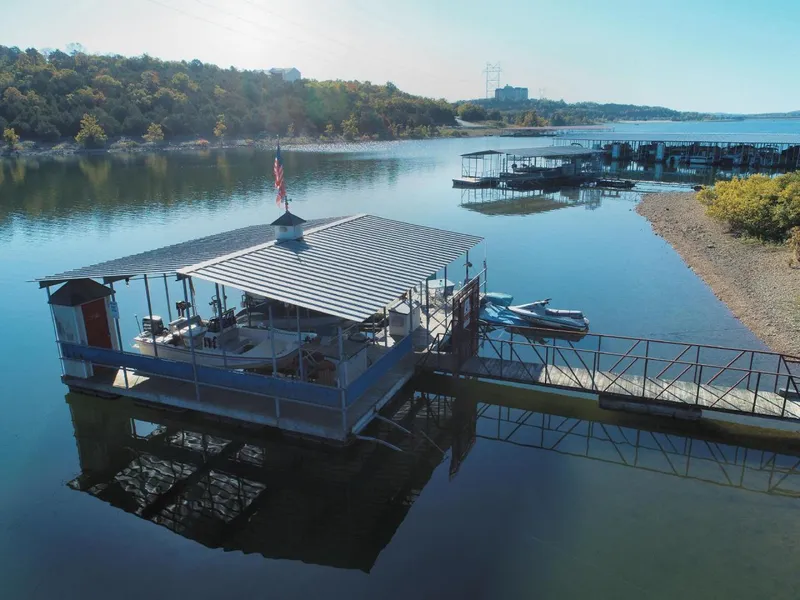 Desirable cove access just off the main channel near Chateau on the Lake is available from this cleared lake lot. A boat slip on a private dock within walking distance of the property is available for an additional price. To further boost this property's desirability is a shop building with studio-like living quarters and partial utilities already connected. Plenty of room to build your perfect home and start living the lake life at Table Rock Lake. Electric and community water already connected to the shop; an advanced septic system will be needed. Boat slip add'l $40k. Package deal optional with an additional lot up the road & Treasure Lake Membership option (see MLS# 60176191). Possible owner financing with a solid offer.