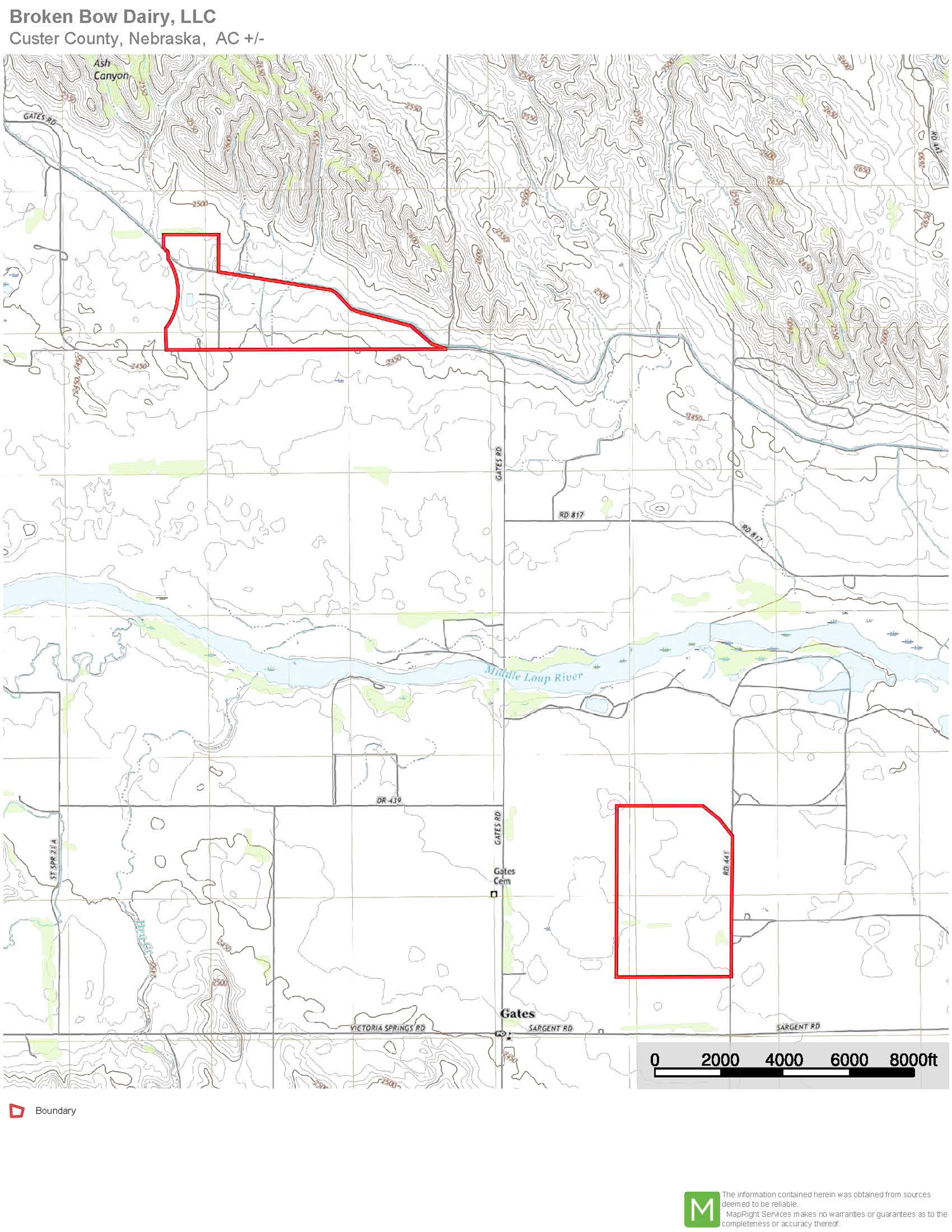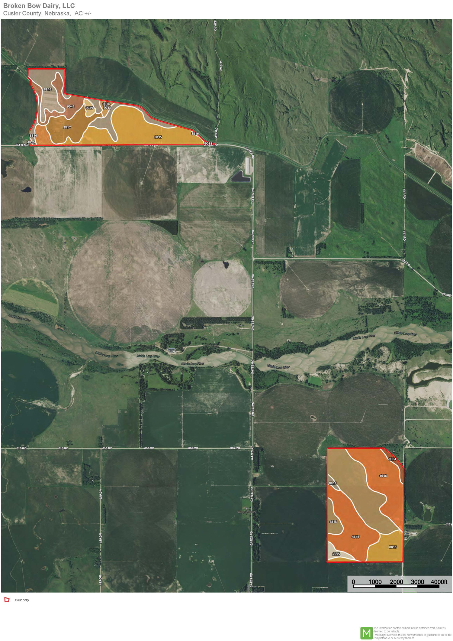 Custer County is in the true center of the state of Nebraska, and the dairy is on the southern edge of the great Sandhills grasslands. The county lies over the Ogallala aquifer providing the best quality and largest quantity of underground water storage in the world. This provides pure water at a shallow depth for the cattle and the irrigated land for the dairy. Some of the dairy-owned acres also have access to a rural canal system providing additional water. Many acres of neighboring irrigated farms are available to purchase feed and support the growth of the business in the future.