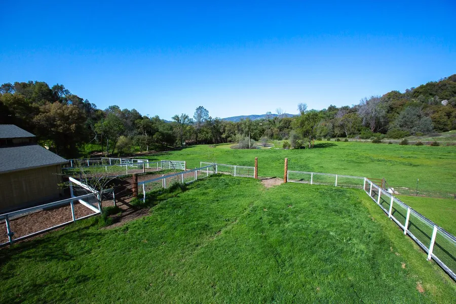 Peace and Tranquility on your very own well established 13 plus acre Mariposa Ranch. With TWO Custom Homes nestled just above the riding arena, your 1536 Sq Ft 3 stall Barn with paddocks, 2 cross-fenced pastures, large Pond, foaling pen, all adjacent to BLM land. Stunning distant mountain views at almost every turn on the land. The property has been extremely loved and well maintained over the years as its been brought to its fullest potential and optimum use for the Horse Lover, extended family, or farmer. Note every custom detail as you enter the 2007, 2 bed 1 bath "Cottage" which looks onto its own private patios showcasing the the surrounding property features and highlights. Cherry hardwoods, 9 ft high ceilings, gourmet kitchen, living area with wood-stove, granite shower, antique claw-foot tub, usable attic space, gated and fenced small animal area behind and along sides of home plus so much more. One fun bonus here is the detached shower/ bathroom or "Pool" house changing room. The second home above is a refreshed 2100 Sq Ft ranch style with 3 full bedrooms and another room that has an attached bathroom which could easily serve as a forth bedroom or master suite. Very open floor plan with extra storage though-out as well as a "wine" cellar below. Expansive slate patio wraps around all three sides with mature wisteria and trumpet vines. 2 Wells, an artisian Well, Seasonal creek and many verities of fruit trees, and evergreen trees all on a drip system. MAKE APP SOON