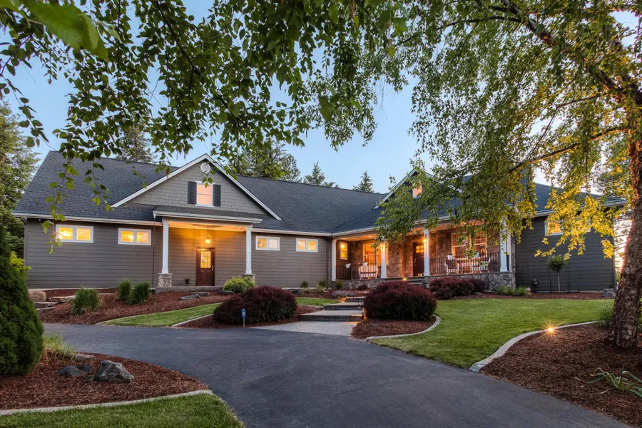 Private gated neighborhood ''Harbor View Estates'' country living just minutes from Coeur d'Alene! Gourmet kitchen with stainless and granite, large pantry, three fireplaces, library or music room, two-story foyer. High-end details include built-ins, crown molding, feature ceilings, stone, hardwood. Perfect for entertaining with spacious dining room, built-in wet bar, sound system throughout. Master bedroom has fireplace, separate walk-in closets, walk-in shower with wide entry, jacuzzi tub. Two additional bedrooms, each with attached full-size bathrooms. Upper level has large multipurpose room plus office or another bedroom with full bathroom and storage. Over 4000 sq. ft., with a 4+ car heated garage. Pristine 2 acre setting beautifully landscaped with views towards Mica Peak.