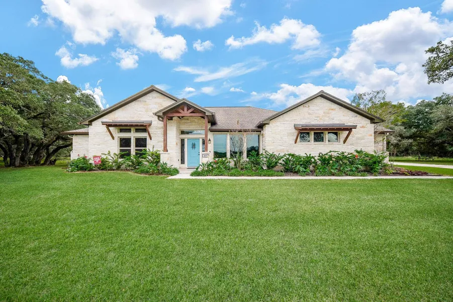 Escape the hustle and bustle of the city and experience peaceful country living with this stunning 1 story on 20 acres in Inez, Texas. Step inside and you'll find a spacious and well-appointed home with 3 bedrooms, 2.5 bathrooms and plenty of living space. The open floor plan boasts high ceilings, crown moulding, corner fireplace and commercial grade vinyl plank flooring, surround sound. The gourmet kitchen is a chef's dream with stainless steel appliances, double oven, huge walk in pantry. The formal dining area is perfect for family gatherings and entertaining guests. The primary suite is a peaceful retreat with a spa-like ensuite bathroom featuring a soaking jacuzzi tub and separate walk-in shower. The sparkling pool and spa, covered patio and outdoor kitchen area perfect for relaxing and enjoying the warm summer days.The property also includes all new cattle fencing for livestock with 6 new galvanized gates, 40x20 shed for equipment storage, sprinkler system, outdoor cameras, security system, tankless water heater, 2017 Kodiak safe (safe stays) and so much more with endless possibilities on 20 acres. Only a short 25 min. drive to Victoria and shopping. Don't miss out on the opportunity to live in this beautiful country home!