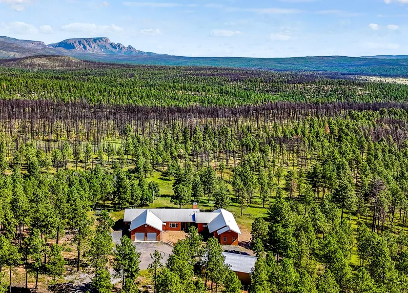Set on a serene 13-acre forested lot, this home offers privacy, wildlife, and breathtaking natural surroundings. The property offers spectacular views of Hermits Peak and is dotted with majestic Ponderosa Pines and Gambel Oaks, making it a haven for wildlife enthusiasts. Residents can enjoy easy access to the Santa Fe National Forest, perfect for horseback riding, ATV adventures, and hiking. The area is teeming with wildlife, including mule deer, elk, turkey, bears, foxes, coyotes, songbirds, hummingbirds, and raptors, providing an unparalleled connection to nature. The property is located in GMU 46, which offers unlimited landowner elk tags and over-the-counter landowner deer tags. Santillanes Creek Ranch is an ideal property for year-round living, or a summer get-away, with the perfect mix of seclusion and convenience.
