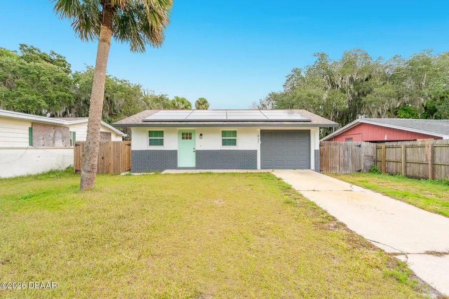 SKIP HIGH ELECTRIC BILLS & LIVE THE COASTAL LIFESTYLE! Welcome to this beautifully updated 3-bedroom, 1-bath home in the heart of Edgewater-just a short bike ride to New Smyrna Beach, popular restaurants, and vibrant nightlife. Designed for comfort and efficiency, the functional layout maximizes every square foot, creating a warm and inviting space perfect for everyday living or entertaining. A standout feature is the Tesla Solar Energy System, offering impressive energy savings and eco-friendly living. All-new windows installed in 2023 enhance efficiency, fill the home with natural light, and add a modern touch. Step outside to a spacious backyard with room to relax, garden, or create your own outdoor retreat. Lovingly maintained and built to last, this home has weathered Florida storms with zero hurricane damage. Move-in ready, low maintenance, and ideally located, this is a fantastic opportunity for buyers seeking stress-free living near the beach.
