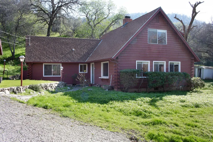 Own your very own log cabin hideaway in a quiet and serene setting on 1.15 acres and make it an income producing air bnb! Three Rivers is the main entrance to Sequoia and Kings Canyon National Park. Minutes away from Lake Kaweah to enjoy all year long. This home features 3 bedrooms, 2 bathrooms, over 2200 square feet. As you enter the living room you will enjoy the beautiful views through the ample windows throughout. Beautiful wood beamed ceilings and wood burning fireplace complete the room. Flex room can be used in many different ways possible 4th bedroom, office, play room, den. Laundry conveniently located inside. Open lay out kitchen with breakfast area and walk in pantry. Master bedroom on main floor with ensuite. Access your private covered patio through kitchen or master bedroom. Walk upstairs to 2 enormous bedrooms with full bath. Detached oversized 2 car garage with work bench. A must see! Schedule your showing today!