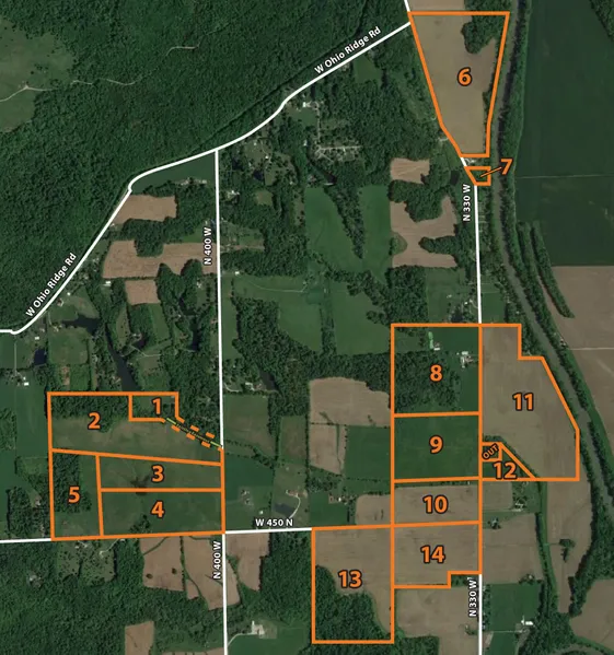 Soil Tracts 1-5: Blocher-Cincinnati silt loams; Nabb silt loam; Avonburg silt loam Tracts 6-7: Martinsville loam; Whitaker loam; Fox loam Tracts 8-14: Pekin silt loam; Lauer silt loam; Blocher-Cincinnati silt loams; Bartle silt loam