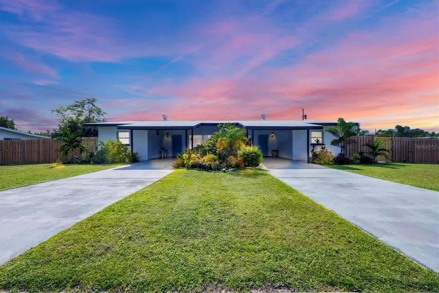 ATTENTION INVESTORS!FRESHLY PAINTED! NO HOA OR CDD! NOT FLOOD ZONE! Excellent income opportunity! Minutes away from WARM MINERAL SPRINGS!Two end units have: 2 bedrooms, 1 bath, a kitchen, a family room, a living room, and a Florida room. 1 bedroom, 1 bath. All 3 units have a washer and dryer. Common use shed in the back. Tenants pay their own electricity. Excellent location near the Warm Mineral Springs. Several upgrades to the major mechanicals, new a/c units in the last two years, and a house electric meter were installed. The units are individually metered . Nestled in the heart of North Port, this home benefits from its prime location, offering easy access to an array of amenities and attractions. Discover the nearby pristine Gulf beaches, where you can bask in the sun, partake in water activities, or simply relish the tranquility of the ocean. Embark on nautical adventures from the conveniently located marinas, allowing you to explore the region's captivating waterways and nearby islands. Fishing enthusiasts will delight in the world-class fishing opportunities, while golf aficionados can indulge in a variety of renowned golf courses. North Port is known for its thriving shopping and dining scene, featuring a diverse range of retail centers, boutiques, and restaurants. Immerse yourself in the vibrant downtown area, boasting charming shops, art galleries, and entertainment venues. The city hosts numerous cultural events, festivals, and community gatherings throughout the year, ensuring there's always something exciting happening. Beyond the city's amenities, this vacant lot offers proximity to breathtaking nature parks and preserves. Lose yourself in the beauty of Charlotte Harbor Preserve State Park, where scenic trails, wildlife sightings, and peaceful waterways await exploration. Myakka River State Park is another nearby gem, enchanting visitors with its stunning landscapes and diverse flora and fauna. Nature enthusiasts will find endless opportunities to connect with the outdoors just moments away from this property. North Port also boasts excellent educational institutions, reliable medical facilities, and convenient transportation options. The city's welcoming community and strong sense of belonging make it an ideal place to establish roots and create lasting memories. Do not miss out on this exceptional opportunity to craft your dream home or invest in a prime location. Schedule a showing today and begin envisioning the endless possibilities offered by this remarkable property! Experience the best of Florida with nearby beaches, golf courses, and outdoor recreational activities just a short drive away. Don't miss out on the chance to own this extraordinary home.